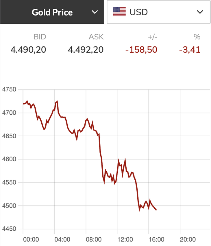 Như vậy giá vàng thế giới đã giảm mạnh ba phiên liên tục và không giữ được mốc 4.500 USD/ounce khi kết thúc tuần giao dịch do sức ép của việc đồng USD tăng giá và lợi suất trái phiếu kho bạc Mỹ đồng loạt tăng mạnh. Dù ở phiên châu Á lực bắt đáy khá mạnh nhưng tới phiên Mỹ, giá vàng đã sụt giảm mạnh trước lực bán quá lớn.