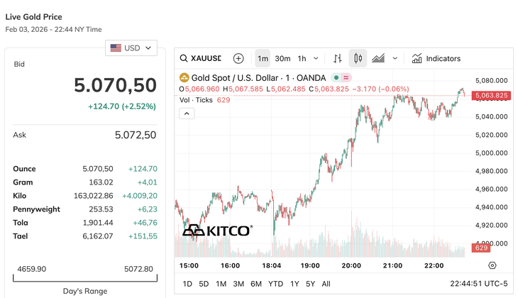 Giá vàng thế giới hướng đến ngưỡng 5.100 USD/ounce - Ảnh chụp màn hình