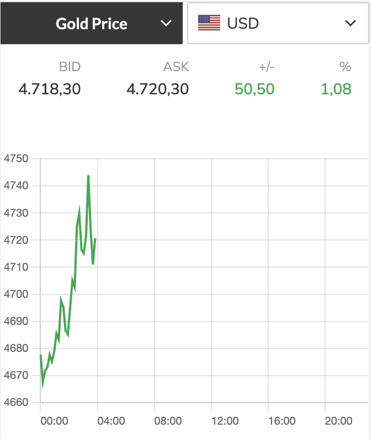 Chiều nay có lúc giá vàng thế giới vượt 4.740 USD/ounce - Ảnh chụp màn hình