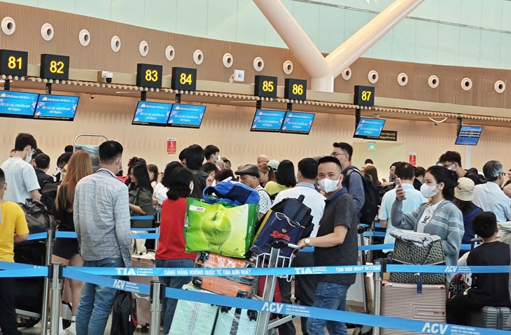 Hành khách làm thủ tục tại sân bay Tân Sơn Nhất, TP.HCM trước kỳ nghỉ lễ 30-4 và 1-5 - Ảnh: CÔNG TRUNG