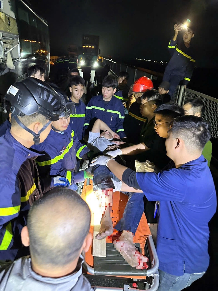 Vụ tai nạn làm 2 nạn nhân là tài xế và hành khách trên xe khách bị đa chấn thương, mắc kẹt trong xe không thể tự thoát ra ngoài.