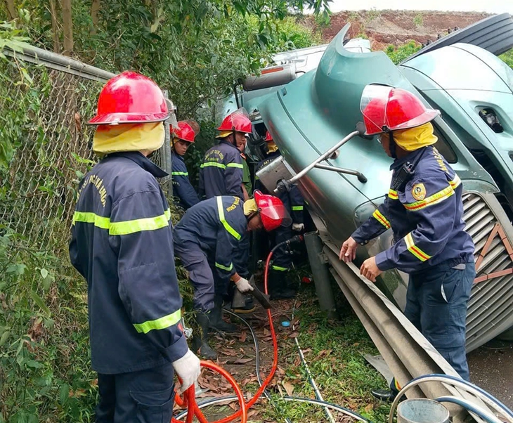 Nhận định tình huống khẩn cấp, lực lượng cảnh sát phòng cháy chữa cháy và cứu nạn cứu hộ đã sử dụng thiết bị banh, cắt thủy lực cùng các dụng cụ chuyên dụng để phá dỡ phần cabin, tạo lối tiếp cận, bảo đảm an toàn cho nạn nhân trong suốt quá trình giải cứu và đưa được tài xế ra ngoài an toàn.