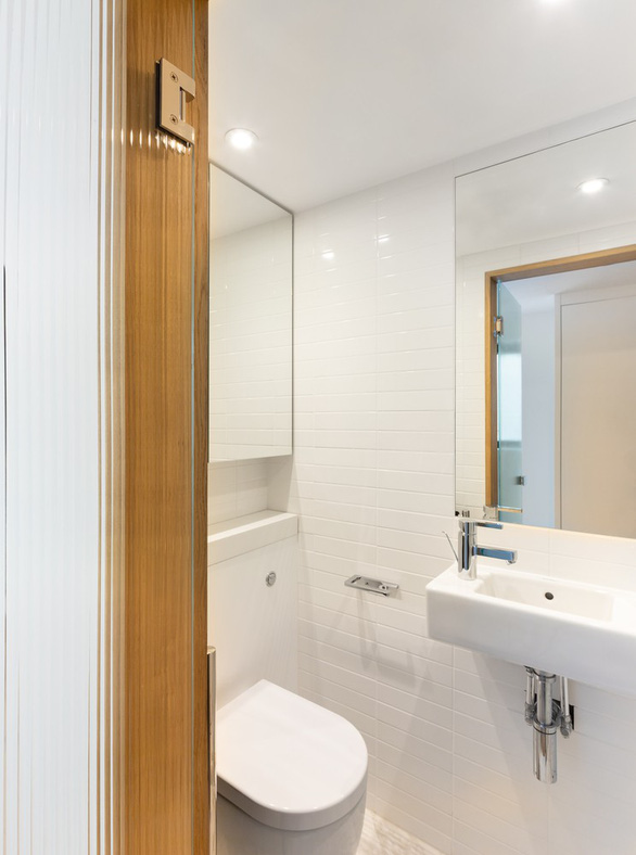 Văn phòng tại gia có phòng tắm khép kín bên trong để có thể chuyển đổi thành phòng ngủ cho khách khi cần.