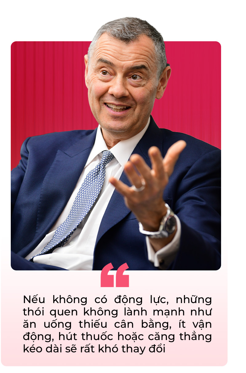 "Nếu không có động lực, những thói quen không lành mạnh như ăn uống thiếu cân bằng, ít vận động, hút thuốc hoặc căng thẳng kéo dài sẽ rất khó thay đổi", ông phân tích.