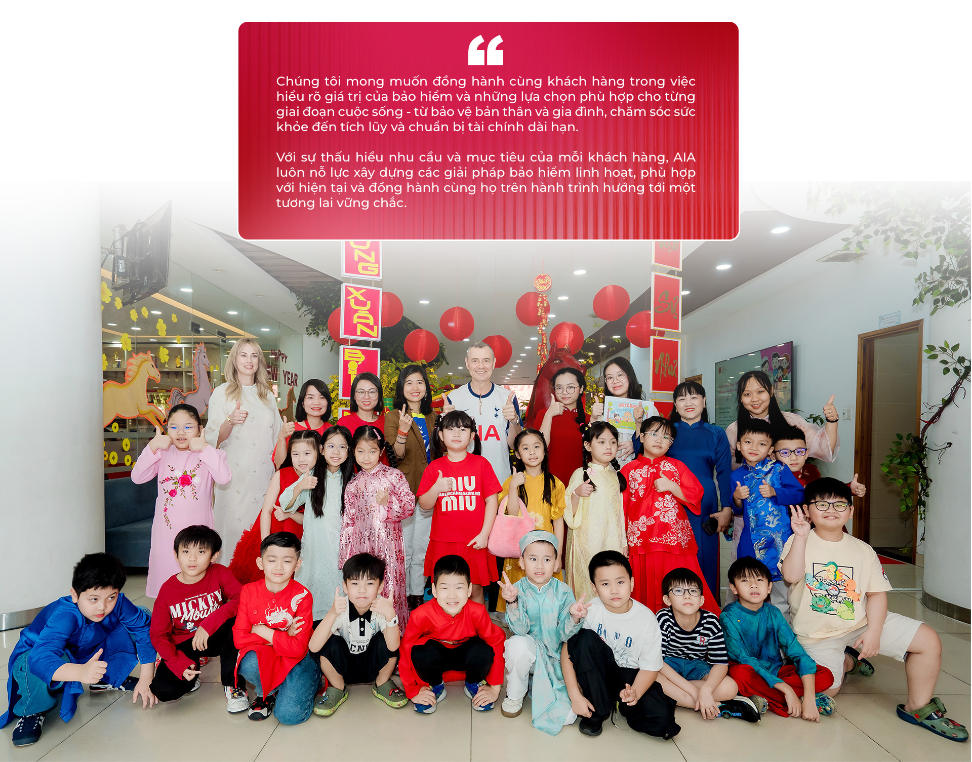 "AIA là một trong những doanh nghiệp bảo hiểm nhân thọ và sức khỏe lớn nhất châu Á, đồng thời cũng là một trong những đơn vị dẫn đầu tại Việt Nam với hơn 1,6 triệu khách hàng. Vì vậy, chúng tôi phải làm mọi thứ có thể để cải thiện chất lượng sức khỏe thể chất, tinh thần và tài chính của khách hàng, để họ thực sự sống khỏe hơn, lâu hơn và hạnh phúc hơn", ông bày tỏ.