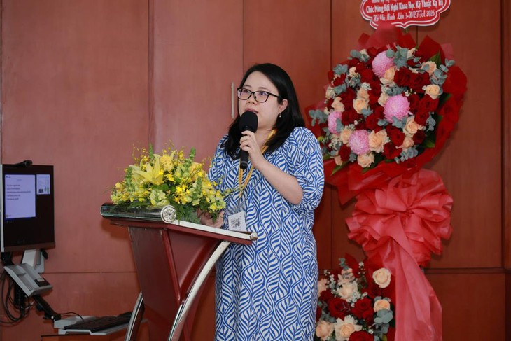 ThS.BS Nguyễn Huỳnh Hà Thu chia sẻ kỹ thuật DIBH tại hội nghị khoa học về xạ trị - Ảnh: BVCC