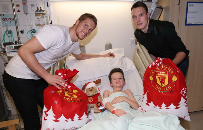 Cách đây hai tuần, vị HLV nổi tiếng nghiêm khắc Louis Van Gaal tuyên bố sẽ cho phép các học trò "xả trại" vui chơi thoải mái trong dịp lễ Giáng sinh. Và đúng như lời hứa của ông thầy người Hà Lan, các cầu thủ M.U đã đón một mùa Giáng sinh đầy ý nghĩa khi đến tặng quà cho trẻ em nghèo phải đón Giáng sinh trong một bệnh viện địa phương.