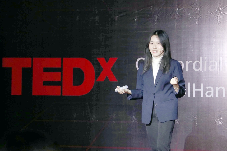 Hiền Thư trình bày bài nói chuyện tại sự kiện hội thảo TED - Ảnh: NVCC