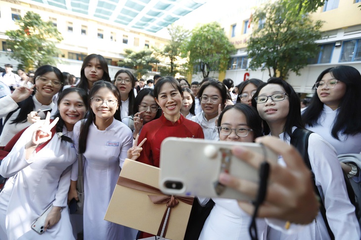 Giáo viên và học sinh Trường THPT Bình Phú (phường Bình Phú, TP.HCM) - Ảnh: NHƯ HÙNG