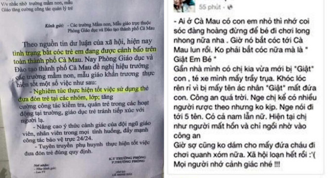 Để nguồn tin trở nên đáng tin cậy, trên mạng facebook còn truyền nhau ảnh chụp một công văn của Phòng Giáo dục và đào tạo TP Cà Mau đề nghị các trường mầm non, mẫu giáo tăng cường quản lý trẻ, yêu cầu các trường nghiêm túc thực hiện việc sử dụng thẻ đưa đón trẻ, tăng cường công tác kiểm tra, quản lý trẻ, tuyên truyền phụ huynh thực hiện tốt việc đưa đón trẻ đúng quy định…