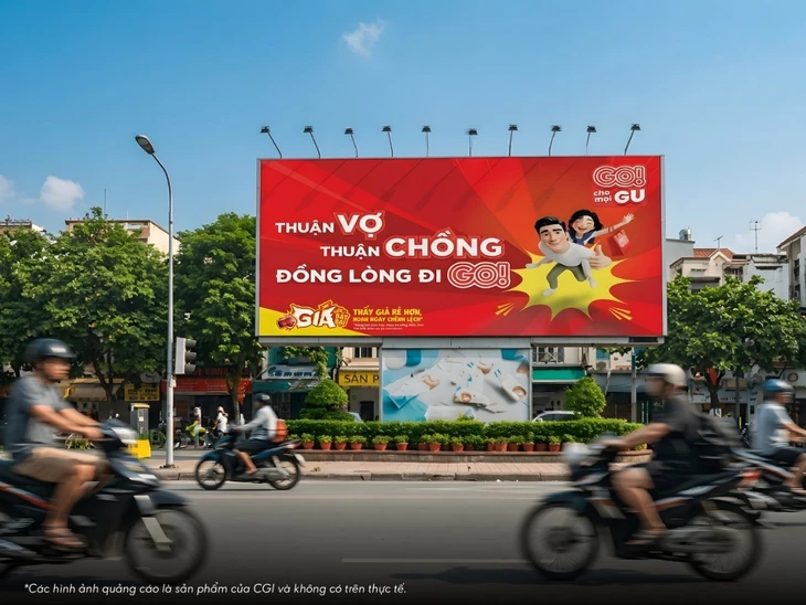 Các biển bảng ngoài trời được GO! triển khai theo hướng địa phương hóa, sử dụng ngôn ngữ và thông điệp gần gũi với người dân từng khu vực - Ảnh: DNCC