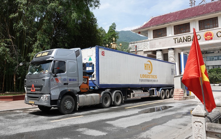 Những chiếc xe container nhập khẩu nông sản vào Việt Nam qua cửa khẩu quốc tế Thanh Thủy (Tuyên Quang) vào tháng 6-2025 - Ảnh: T.T.D.