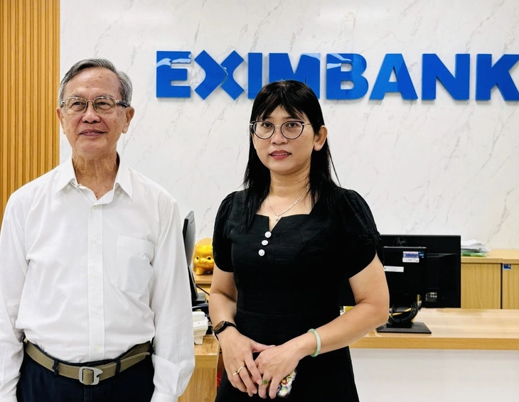 GS.TS Lê Ngọc Thạch (trái) đã trực tiếp đến ngân hàng rút khoản tiết kiệm 1 tỉ đồng để chuyển tặng Trường THPT chuyên Lê Hồng Phong làm quỹ trao Giải thưởng Lê Văn Thới, sáng nay 29-12 - Ảnh: NVCC