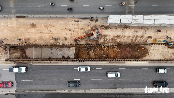 Bề rộng mặt đường còn lại trung bình 10 - 11m sẽ dành để tổ chức cho xe cộ lưu thông hai chiều cục bộ qua các vị trí rào chắn phục vụ thi công.