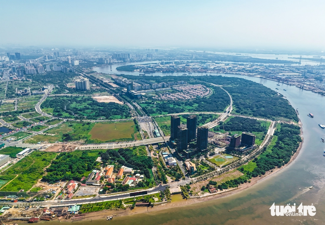 Khi dạo bộ dọc bờ sông phía Thủ Thiêm có thể thấy rõ những tuyến đường rộng thênh thang, mảng xanh và công trình đang dần hoàn thiện. Giữa các khu đất còn trống, nhiều trục đường quan trọng đang chờ mặt bằng thông suốt, xây dựng "khép kín" để phát huy trọn vẹn vai trò kết nối
