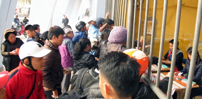 | Các CĐV chen chúc, tìm cách mua chiếc vé xem trận Hải Phòng - HAGL diễn ra 17g ngày 21-1. Ảnh: Đức Bình |