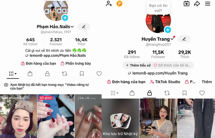 Hai tài khoản TikTok được sử dụng để lừa đảo - Ảnh: Công an tỉnh Lào Cai