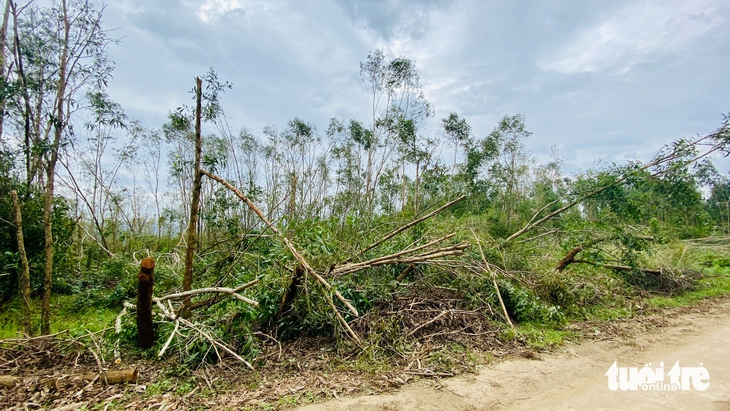 "Chứ một bên là trồng keo, một bên lại làm đường cắt chân núi thì khi mưa lớn chắc chắn sẽ bị ảnh hưởng" - ông Thanh nói.