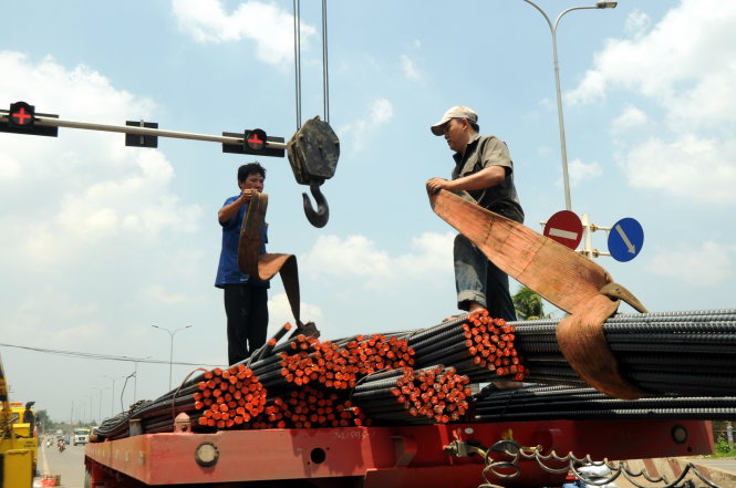 | Xe cứu hộ đang kéo các bó thép về vị trí cũ - Ảnh: A Lộc |
