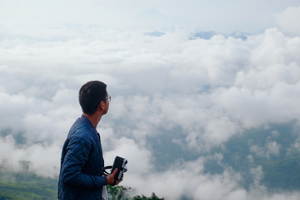 Mây lúc dày lúc mỏng, tầng tầng lớp lớp. Có lúc mây từ trên cao sà xuống, không nhìn thấy gì, nhưng chỉ chốc lát lại biến mất, để lộ ra biển mây đặc quánh dưới thung lũng.