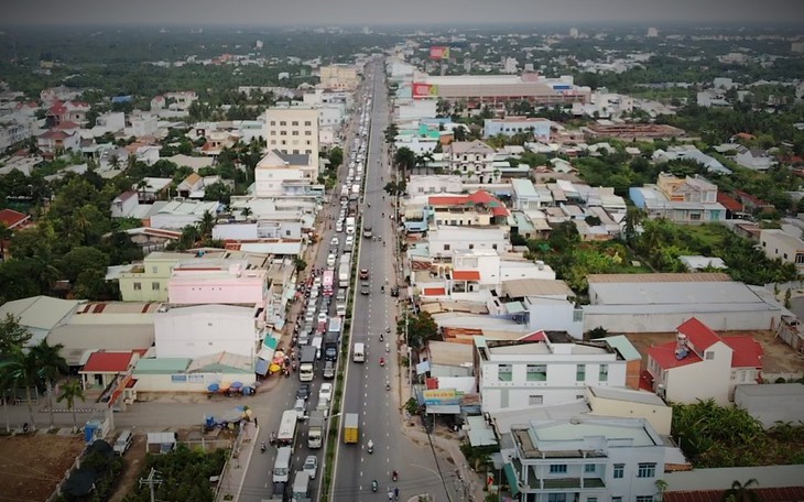 Kẹt xe trên quốc lộ 60, tỉnh Tiền Giang - Video: MẬU TRƯỜNG