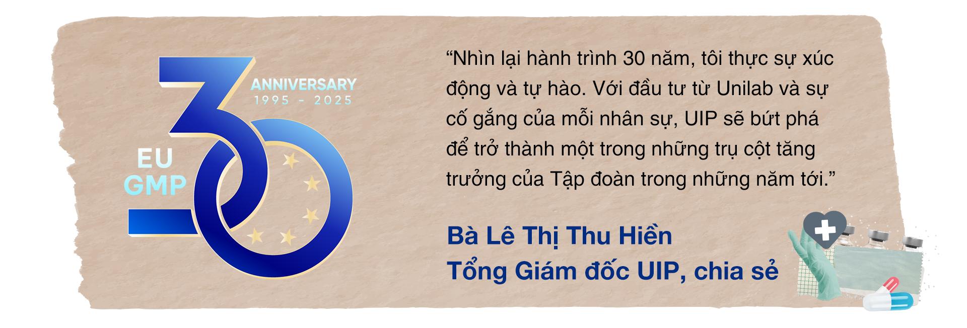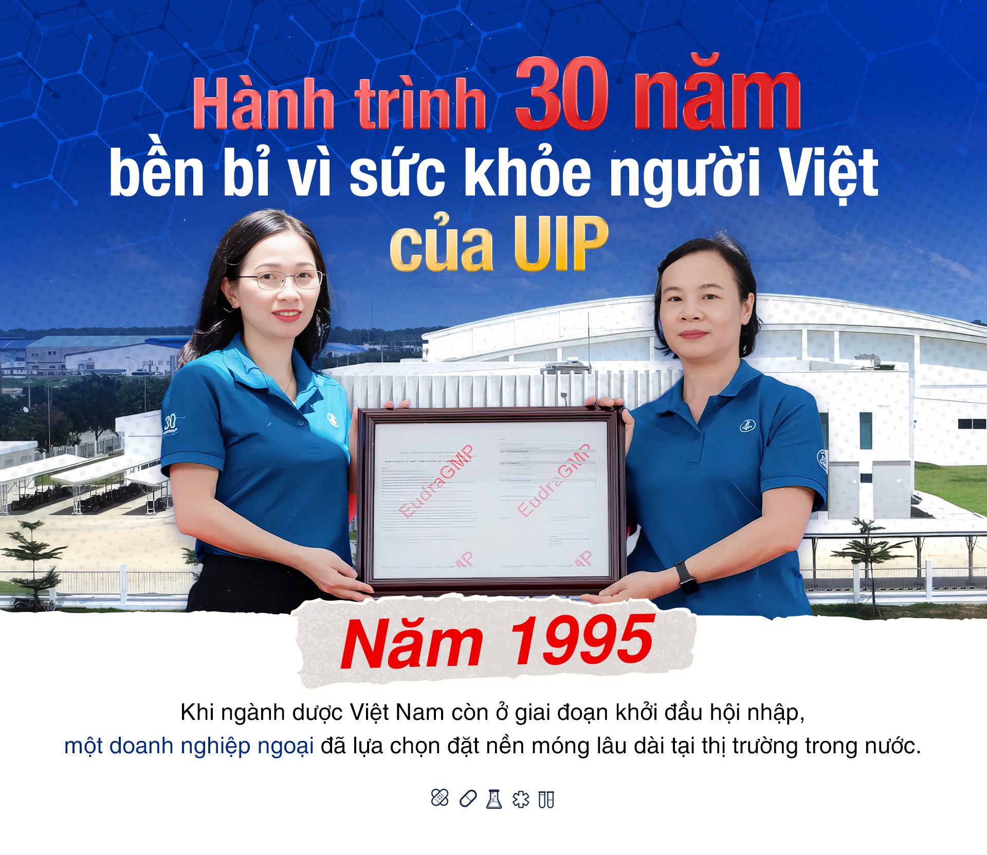 Vào năm 2025, sau tròn 30 năm đồng hành cùng Việt Nam, UIP ghi dấu ấn đột phá khi dây chuyền sản xuất thuốc viên tại nhà máy Bình Dương đạt chuẩn EU-GMP - một chứng nhận chất lượng hàng đầu châu Âu, chính thức đưa tên tuổi UIP và ngành dược Việt vươn ra toàn cầu.