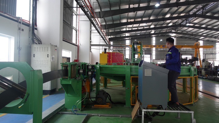 Hoạt động sản xuất ống thép luồn dây điện và phụ kiện tại nhà máy Cát Vạn Lợi - Ảnh: DNCC