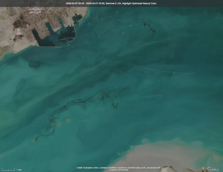 Theo Đài CNN đưa tin ngày 21-4, nhiều vết tràn dầu lớn đã xuất hiện tại vịnh Ba Tư, thậm chí có thể quan sát rõ từ không gian thông qua ảnh vệ tinh, trong bối cảnh các cuộc tấn công giữa Iran và liên minh Mỹ - Israel đã kéo dài gần 2 tháng.