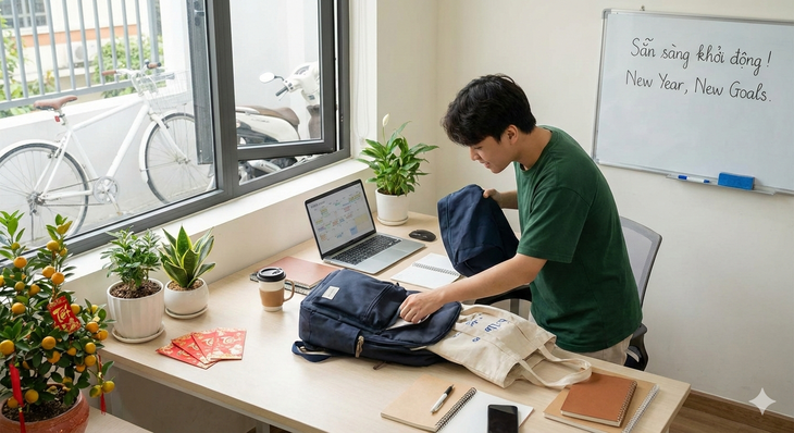 Đừng để “sốc” sau Tết, hãy chuẩn bị những việc làm trước khi quay lại trường lớp, công sở - Ảnh do AI tạo