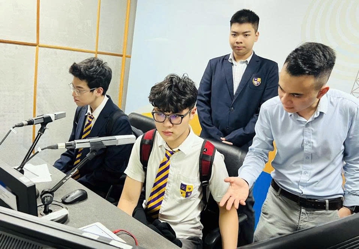 Học sinh Trường phổ thông liên cấp Olympia (Hà Nội) tìm hiểu công việc của các biên tập viên tại Đài truyền hình Việt Nam - Ảnh: nhà trường cung cấp