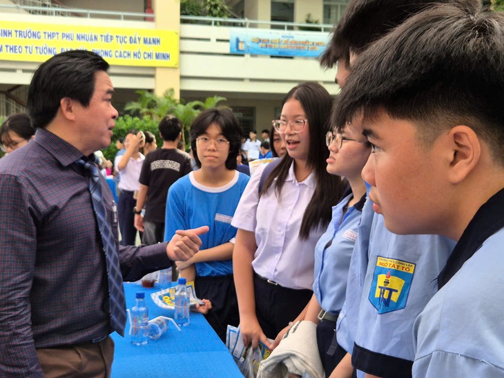 Thầy Trần Công Tuấn - Hiệu trưởng Trường THPT Phú Nhuận (phường Đức Nhuận, TP.HCM) - đã chia sẻ tại Ngày hội tư vấn tuyển sinh lớp 10 do trường tổ chức ngày 18-4, thu hút hơn 1.000 phụ huynh, học sinh lớp 9 tham dự.