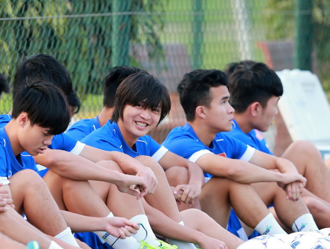 | Tuấn Anh nở nụ cười hồn nhiên trên sân tập. Ảnh: Nam Khánh |