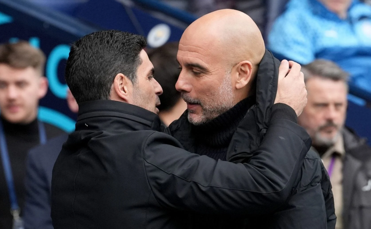 HLV Pep Guardiola (phải) đã giành chiến thắng trước HLV Arteta (trái) trong lần chạm trán gần nhất - Ảnh: PA