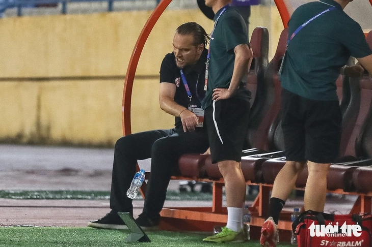 HLV Popov vứt thẻ, ném chai vì cay trọng tài trận gặp Thanh Hóa hôm 10-4 - Ảnh: MINH ĐỖ