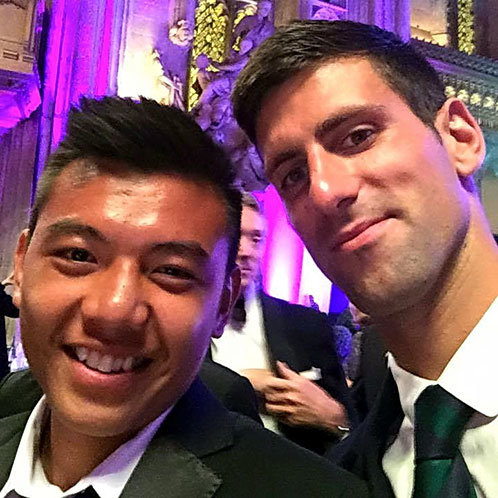 | Lý Hoàng Nam cùng Novak Djokovic chụp hình selfie - Ảnh từ Facebook Hoàng Nam |