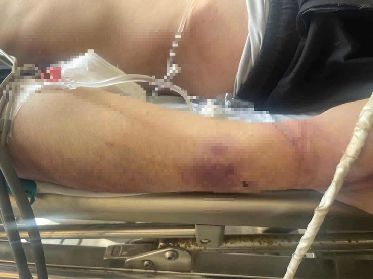 Học viên P.H.N. được đưa đi cấp cứu với nhiều vết thương - Ảnh: Gia đình nạn nhân cung cấp