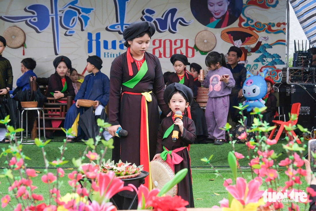 Liền chị nhí 3 tuổi rưỡi "gây sốt" tại một chòi hát dân ca quan họ tại hội Lim (Bắc Ninh) - Ảnh: HÀ QUÂN