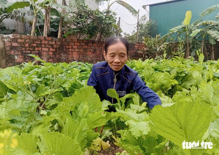 Bà Nguyễn Thị Tương bên vườn rau xanh mướt của gia đình - Ảnh: LÊ MINH