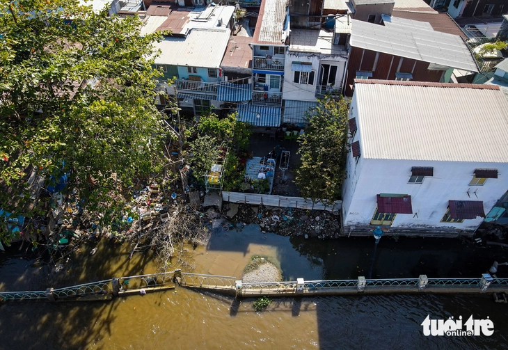 Khu vực kè Thanh Đa bị sạt lở gần cầu Kinh, hàng chục người dân phải di dời đi nơi khác ở tạm từ năm 2023 - Ảnh: CHÂU TUẤN