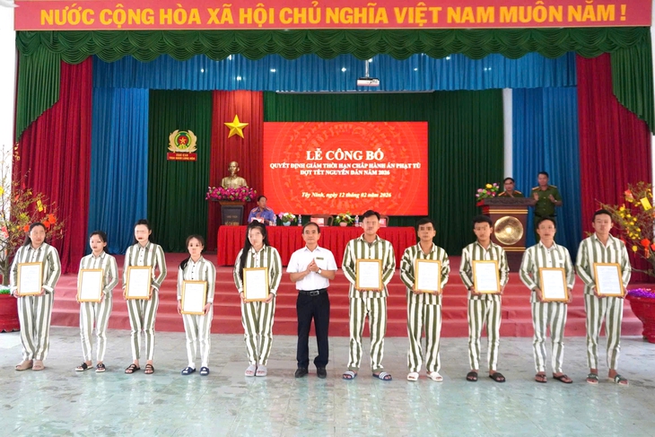 Ngày 12-2, Tòa án nhân dân tỉnh Tây Ninh đã phối hợp với Viện kiểm sát nhân dân tỉnh cùng các trại giam Long Hòa, trại giam Thạnh Hòa, trại giam Cây Cầy, Cục C10 Bộ Công an và Cơ quan Thi hành án hình sự Công an tỉnh Tây Ninh tổ chức công bố quyết định giảm thời hạn chấp hành án phạt tù dịp Tết Bính Ngọ 2026 cho các phạm nhân đang chấp hành án tại các đơn vị.