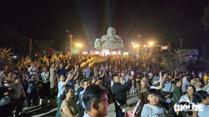 Trước đó, theo ghi nhận của Tuổi Trẻ Online, từ khoảng 18h cùng ngày, dòng người bắt đầu đổ về khu vực đỉnh núi Cấm để tham quan, dâng hương và tìm chỗ chờ tham dự nghi thức thả hoa đăng tại hồ Thủy Liêm. Hàng ngàn người di chuyển bằng xe máy, xe du lịch và cáp treo lên núi từ sớm để kịp tham gia các nghi thức tâm linh trong lễ hội.