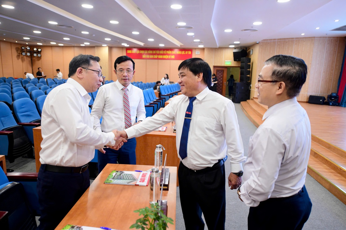 Các đại biểu trao đổi bên lề họp báo công bố chương trình Vì một Việt Nam khỏe mạnh - Ảnh: TỰ TRUNG
