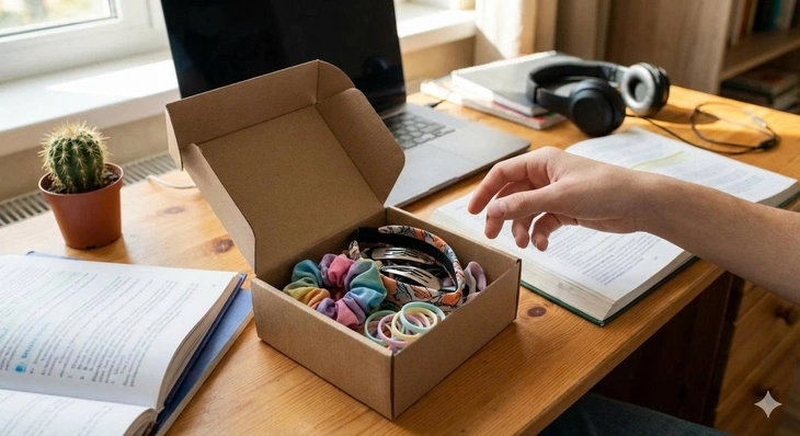 Rồi cuộc mưu sinh cuốn đi, cho đến hôm nay khi tan làm mở cửa bước vào nhà, tôi thấy ngay chiếc kệ dài có một gói nho nhỏ. Một mảnh giấy dán cùng nét chữ quen thuộc của con trai: "Của mẹ". Tôi khẽ mở hộp. Bên trong là một sợi dây buộc tóc nhung mềm, màu cam đất, đúng màu tôi yêu thích.