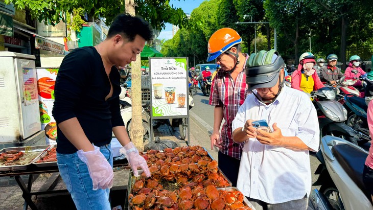 Cua hấp của anh Nghị vừa dọn hàng đã tấp nập khách ghé mua - Ảnh: TRÚC QUYÊN