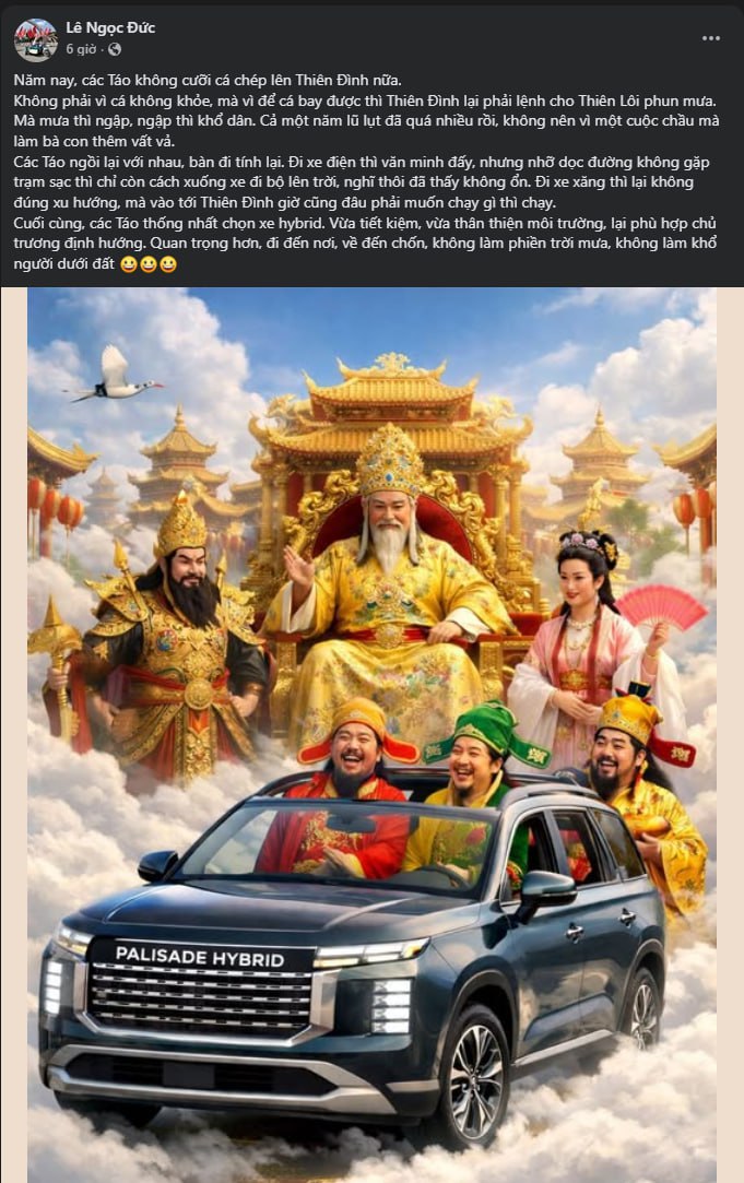 Ngày 10-2, tài khoản Facebook cá nhân của ông Lê Ngọc Đức - Tổng giám đốc Hyundai Thành Công - đăng tải hình ảnh AI mô phỏng một mẫu xe lấy cảm hứng từ Hyundai Palisade thế hệ mới, đi kèm dòng chữ “Palisade Hybrid” trên phần biển tên.
