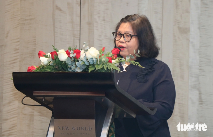 Phó giám đốc IPTC Hồ Thị Quyên phát biểu chia sẻ tại hội thảo - Ảnh: XUÂN THẢO