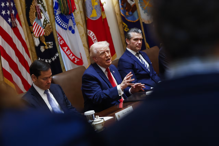 Tổng thống Mỹ Donald Trump tham dự cuộc họp nội các tại Nhà Trắng hôm 26-3 - Ảnh: BLOOMBERG
