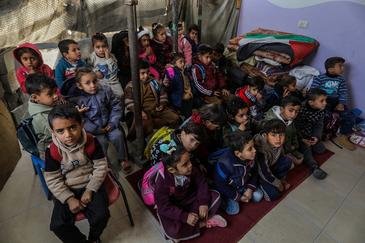 Trẻ em Palestine sơ tán sau cuộc tấn công của Israel - Ảnh: REUTERS
