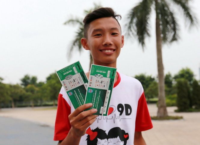 | Một CĐV vui mừng sau khi mua được vé. Ảnh: Nam Khánh |