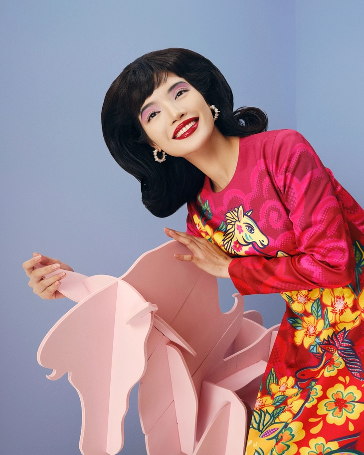 Những hình ảnh quen thuộc trong cuộc sống đời thường như hoa cỏ mùa xuân, tranh dân gian, linh thú… được nhà thiết kế Thủy Nguyễn sáng tạo, cho ra những hình ảnh thú vị, không đụng hàng.